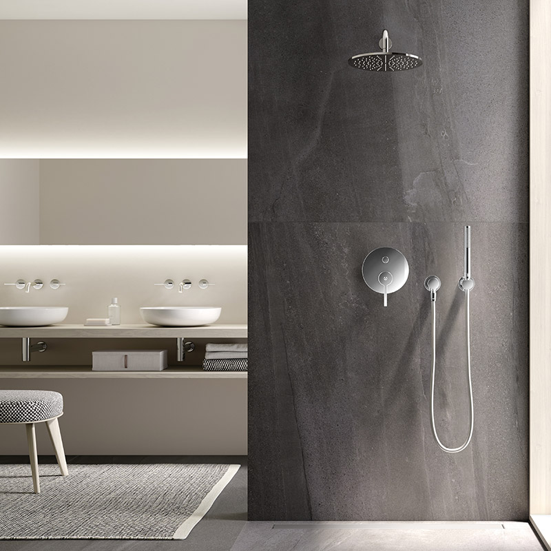 Oft sind es eher kleine, praktische Verbesserungen, die das Leben für die Menschen ein Stück einfacher, bequemer oder sicherer machen. Dazu gehört auch die Weltneuheit KLUDI PUSH & SWITCH, die bei Unterputz-Einhebelmischern die bislang übliche, aber sehr umständliche Zugumstellung durch eine leichtgängige Taste ersetzt: Statt unter Krafteinsatz zu ziehen, lassen sich mit PUSH & SWITCH die Verbraucher in Wanne oder Dusche ganz einfach per Fingerdruck wechseln. Dieses aus zahlreichen Alltagssituationen bekannte Bedienkonzept mit K(n)öpfchen stellt sicher, dass die Bedienung stets gelingt – ganz unabhängig vom Alter und der körperlichen Fitness. Bequemer und intuitiver geht es nicht!